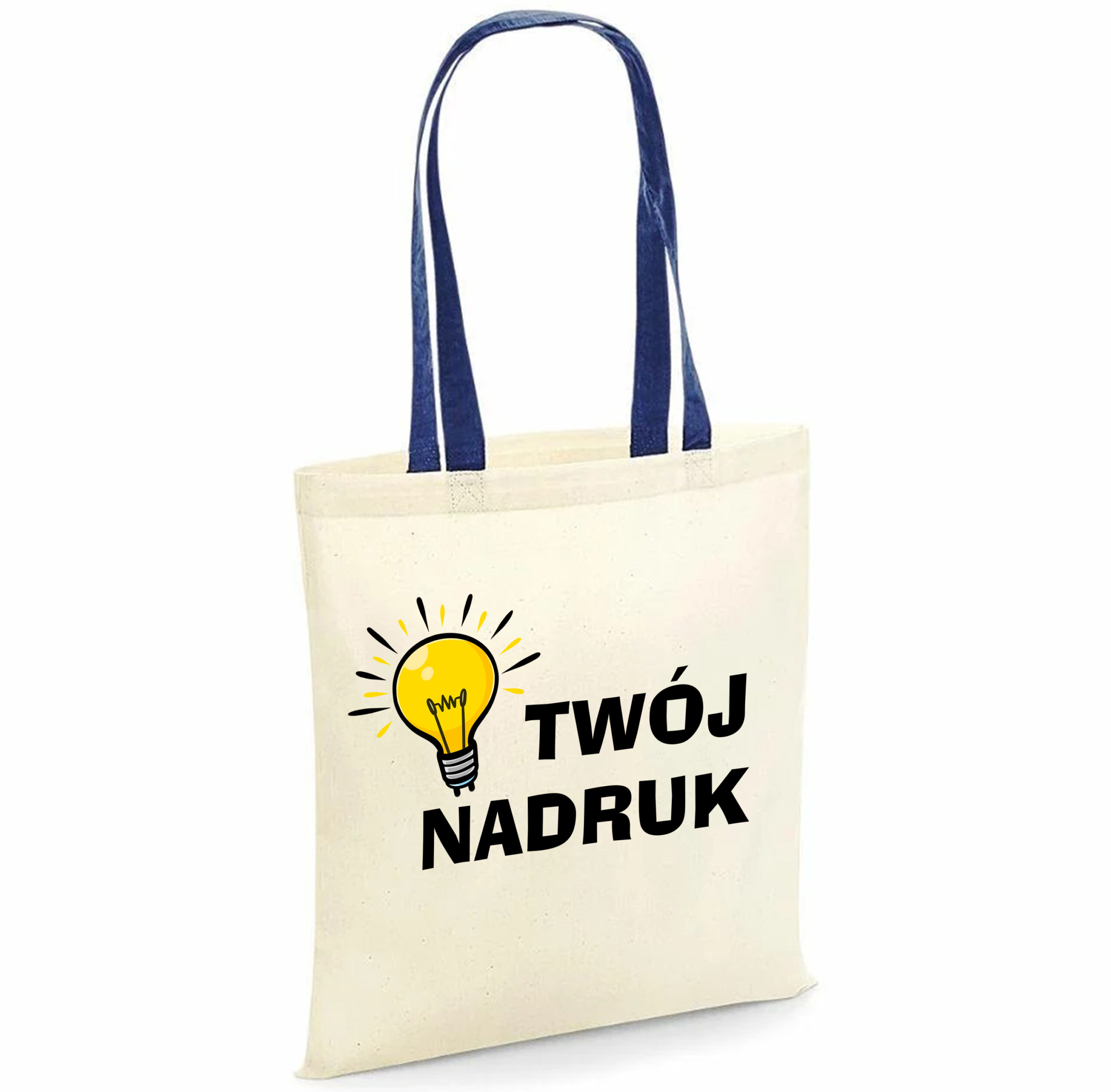 Strona główna Sklep Torby Z kolorowymi uchwytami Torba bawełniana na zakupy z kolorowymi uchwytami rączkami granatowymi